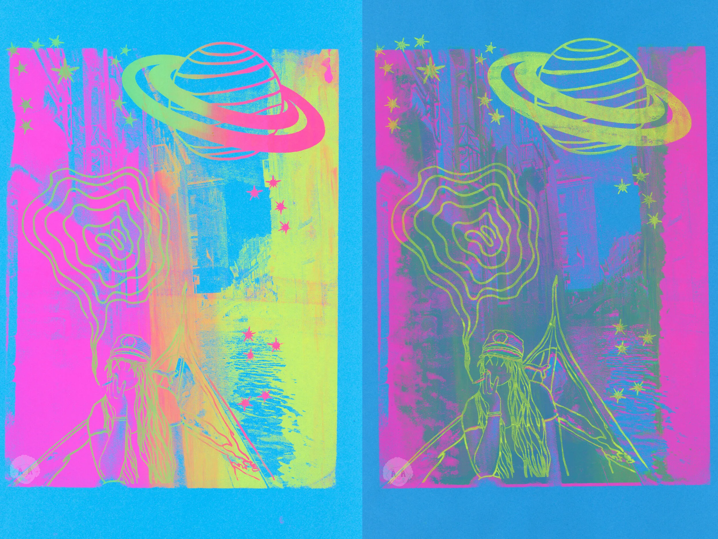 Venice reimagined (8/8). Photograph and digital illustration to screen print with water based ink on paper by Amyra Atheefa, 2020.