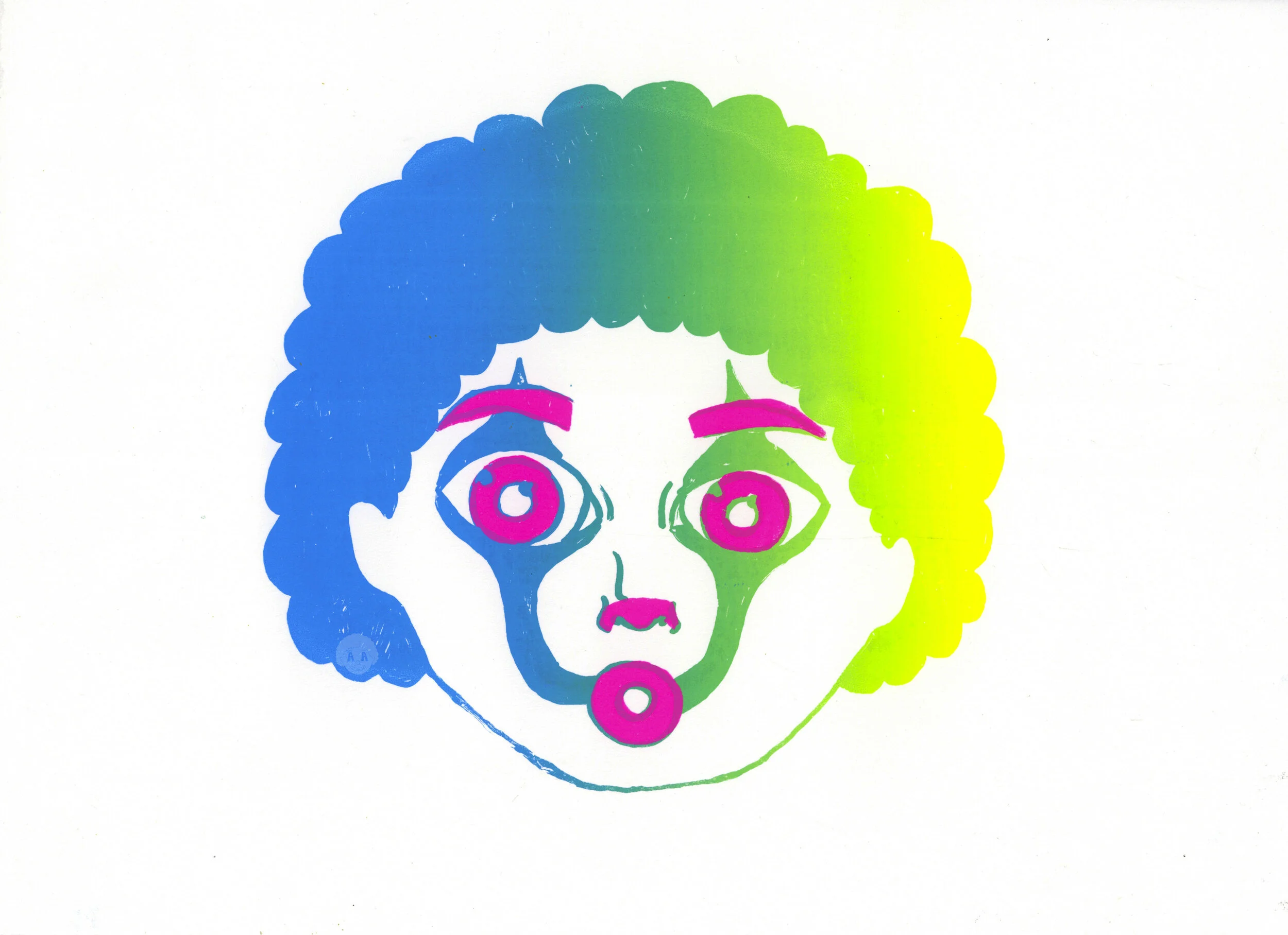Clownprint. Screen print with water based ink on paper by Amyra Atheefa, 2019.